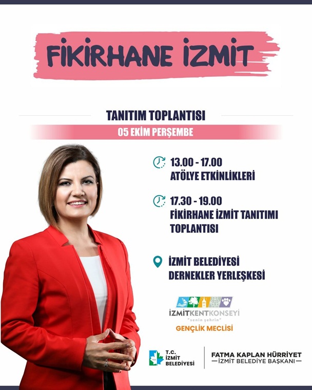 Lansmanda Fikirhane İzmit projesinin tanıtımı, vizyonu ve şehre nasıl bir katkı sağlayacağına dair detaylı bilgiler paylaşılacak. İzmit Belediye Başkanı Fatma Kaplan Hürriyet, şehrin çeşitli konularında toplumun fikirlerini ve düşüncelerini alarak kentin geleceğini inşa etmeyi, kentte birlikte çalışarak daha yaşanabilir bir İzmit için ‘Ben de varım’ diyecek tüm gençleri projeye katılmaya davet etti.