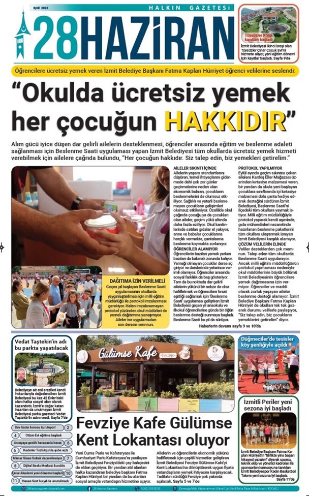 Umuyorum ki el birliğiyle bu ülkeyi bir gün kaliteli eğitimi, güçlü ekonomisi ile refah içinde yaşayan huzurlu bir ülke yapacağız. Sosyal devlet anlayışıyla çocukların derslerine aç girmediği, ailelerin çocukları okulda aç mı diye düşünmediği, her çocuğun eğitimde fırsat eşitliğiyle büyüdüğü günlere ulaşacağız. İşte o güne kadar bir anne, bir veli ve sizlerin verdiği yetkiyle İzmit Belediye Başkanı olarak çocuklarımız için ücretsiz beslenme desteğini de, çocuklarımıza kırtasiye yardımını da, ufuklarını açacak sosyal ve kültürel her türlü projeyi de gerçekleştirmeye, daha da yayarak büyütmeye devam edeceğiz. Saygı ve sevgilerimle, Fatma Kaplan Hürriyet.