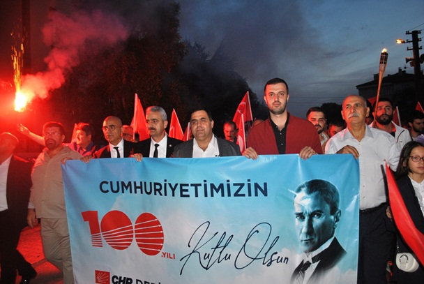 CHP Derince İlçe Başkanlığı Cumhuriyetimizin kuruluşunun 100.yılı nedeniyle Yenikent mahallesinde 500 kişinin katılımıyla fener alayı ve Tanyıldız düğün salonunda görkemli kutlamalar yaptı.