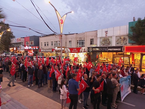 Ses düzeni kurulan İlçeye ait araçtan anons ve sloganlarla meşaleli bir yürüyüş başlatan ilçe yönetimi 200 kişi ile başladığı korteje vatandaşların büyük ilgisiyle kortej 500 kişiye ulaştı. Yenikentli vatandaşlar yollarda ve sitelerin balkonlarına çıkarak Türk bayraklarını sallayarak sloganlara tempo tuttular.