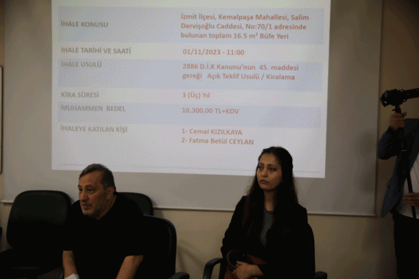 Toplantıda ilk olarak D-100 üzerinde bulunan Adnan Menderes Üst Geçidi büfe yeri için ihale gerçekleştirildi. Açık teklif usulü düzenlenen ihalede 3. turda Fatma Betül Ceylan çekilirken Cemal Kızılkaya 16 bin 550 TL’lik teklif sundu. Gölcük Deniz Evler Mahallesi’nde bulunan çekek yeri için düzenlenen ihaleye ise Gölcük İlçe Merkezi ve İhsaniye Beldesi Su Ürünleri Kooperatifi adına Ramazan Fil ve Mehmet Şerit katılarak 3 bin TL’lik teklif sundu.