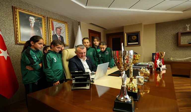 Kocaeli Büyükşehir Belediye Başkanı Tahir Büyükakın, Kadınlar 1. Liginde mücadele eden ve alt yapılarında 500’e yakın sporcu bulunduran Kocaeli Bayan Futbol Takımını makamında konuk etti. Anadolu Yıldızlar Ligindeki Türkiye Şampiyonu sporcularıyla da yakından ilgilenen Başkan Büyükakın, “Şehrimizin kızlarının aldığı başarılar bizi çok mutlu ediyor. Onlarla gurur duyuyoruz. Alt yapılarda spor yapan ve futbol oynayan yavrularımızın varlığı çok kıymetli. Bu başarıların yanında spor kültürüyle büyüyen çocuklarımız ve gençlerimiz, geleceğin sağlıklı bireyleri de olacak. Bakınız, sentetik futbol sahalarımızı şehrimizin her köşesine kazandırdık. Basketbol ve voleybol sahalarını okullarımız sayesinde mahallelere kadar yaydık. Hayata geçirdiğimiz spor salonlarıyla da çocuklarımıza, gençlerimize ve her yaştan insanımıza hizmet veriyoruz” dedi.