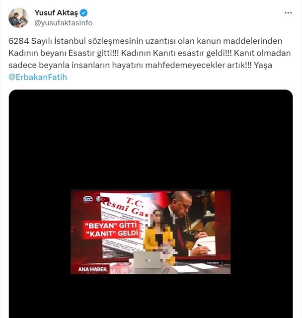 Yeniden Refah Partisi Genel Merkez Mali İşler Başkan Yardımcısı Yusuf Aktaş, Tuncel’in haberi sunduğu anlardaki görüntüsünü, Tuncel gözükmeyecek şekilde buzladı ve sosyal medyasından, “6284 Sayılı İstanbul sözleşmesinin uzantısı olan kanun maddelerinden Kadının beyanı Esastır gitti!!! Kadının Kanıtı esastır geldi!!! Kanıt olmadan sadece beyanla insanların hayatını mahvedemeyecekler artık!!! Yaşa Fatih Erbakan” notu ile paylaştı.