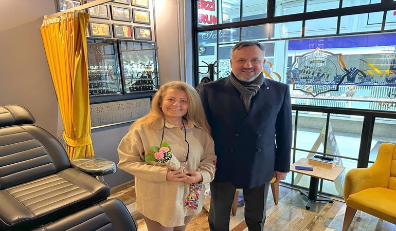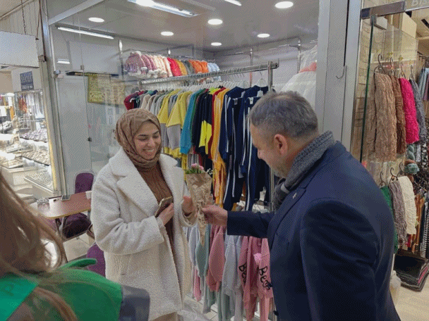5 Aralık Dünya Kadın Hakları Günü dolayısıyla İzmit Fethiye Caddesi üzerinde esnaf ve işletmecilik yapan kadınlara özel ziyaret gerçekleştiren Başkan Halil Güngör Dokuzlar, çiçek takdiminde bulundu. Gerçekleştirilen ziyaretlerde duygularını ifade eden Başkan Dokuzlar:” Ülkemizin muasır medeniyetler seviyesinin üstüne çıkma öncelikli hedefine ulaşımı, ancak asaletin timsali kadınlarımızın her geçen gün birçok alanda daha da güçlenmesi ile mümkün olacaktır.”dedi