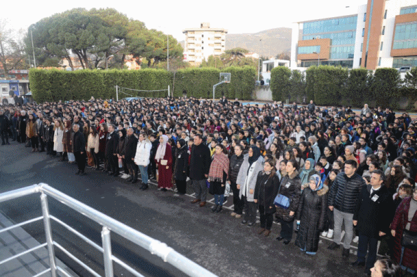 Bayrak töreni sonrasında okul konferans salonunda öğretmenlerle de bir araya gelen Başkan Söğüt, “Adem hocamızın vefatı bizleri de derinden üzdü. Acınız büyük. Hepimiz üzüntülüyüz. Kendisine yüce Allah’tan rahmet, eğitim camiamıza başsağlığı diliyorum. Mekanı cennet olsun” dedi.