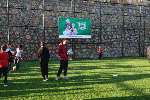 Derince’de toplumun tüm kesimlerini kapsayan projelerini bir bir hizmete sunan Derince Belediye Başkanı Zeki Aygün, çocukların ve gençlerin talepleri doğrultusunda spor alanlarını inşa etmeye devam ediyor. Daha önce 18 yeni spor alanını ilçeye kazandıran Başkan Aygün, 19. spor tesisini Sırrıpaşa Mahallesi Öğretmenler Vadisi’nde kullanıma sundu. Futbol sahasının yer aldığı tesisin açılışı Derince Belediye Başkanı Zeki Aygün, AK Parti İlçe Başkanı Koray Merdan, Derince Belediyesi Meclis Üyeleri Kenan Yalçın ve Mustafa Morgül, Derince Belediye Başkan Yardımcısı Abbas Bayrak, Sırrıpaşa Mahalle Muhtarı Hülya Yıldırım, Çınarlı Mahalle Muhtarı İbrahim Sümer, AK Parti İlçe Gençlik Kolları Başkanı Sefa Bostan, ilçe yöneticileri, çocuklar, veliler ve vatandaşların katılımıyla gerçekleşti.