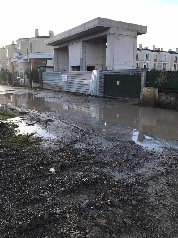 Sitenin önündeki yol inşaata malzeme taşıyan kamyonlar yüzünden delik deşik olmuş durumda. Yağmur yağdığında da etraf çamura bulanıyor, su birikintilerini aşmak içinde çizme giymek gerekiyor. Yüzlerce kişi sabah işe giderken aynı yolu kullanıyor, üstelik okula giden çocuklarda var. Bu durum defalarca Kartepe Belediyesi’ne iletildi ama gelen giden yok.