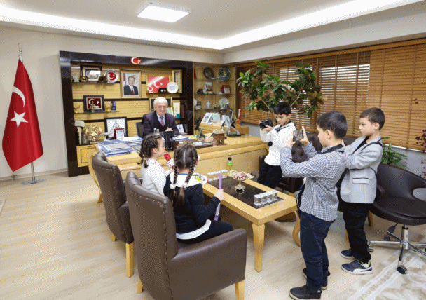 Hizmete sunduğu projelerinde daima çocuklar ve gençleri ön planda tutan Derince Belediye Başkanı Zeki Aygün, eğitime yönelik faaliyetleri desteklemeye devam ediyor. Sık sık okul ziyaretlerinde bulunan ve eğitim kurumlarının temsilcileri ile bir araya gelen Başkan Aygün, bu kez Şükrü Aracı İlkokulu 3/A Sınıfı öğrencilerini belediyede misafir etti.