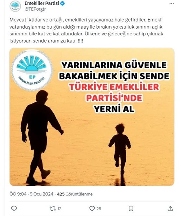 Emeklilerin isminin yer aldığı ilk parti 2023'ün Kasım ayında kurulan Türkiye Emekliler Partisi (TEP) olmuştu. Duvar'da yer alan habere göre, TEP'ten sonra, 'Emekliler Partisi (EP)' adında bir emekli partisi daha kuruldu.