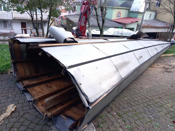 Gölcük’te terk edilmiş bir bina daha yıkıldı