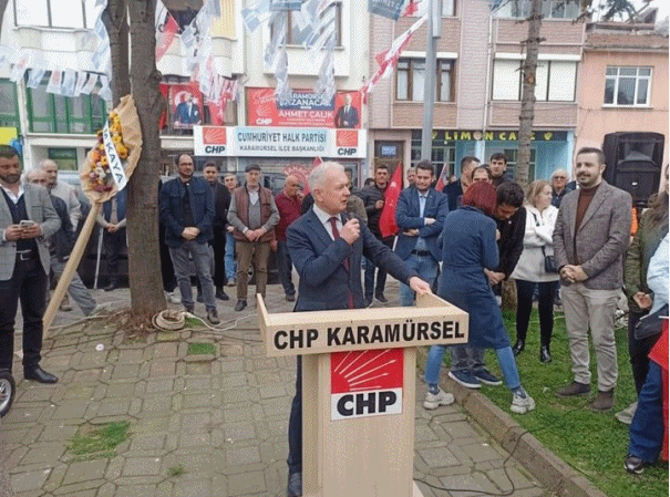 İyi Partiden istifa ederek CHP saflarına katılan ve Karamürsel’de geniş bir kesim tarafından tanınan Ahmet Çakmak’ın CHP’den belediye meclis üyesi adayı olacağı ifade edildi. “Karamürsel’in gençleri Ahmet Abimizin Yanındayız” sloganları arasında kürsüye çağrılan Ahmet Çakmak; “Tüm yaşamımı Karamürsel’de geçirmiş olmanın verdiği gururla inşallah Ahmet Başkanımızla birlikte Karamürsel’e sosyal belediyeciliği getirecek ve çok güzel işler yapacağız” dedi.