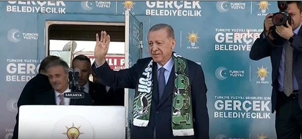 Erdoğan, “Ülkemizi Türkiye Yüzyılı belediyeciliği ile mahalli idarelerde de dünyanın en üst ligine çıkarmak istiyoruz. Milletimizden 31 Mart’ta sandıkta desteği, muhalefetin yaptığı gibi siyasi rant paylaşımı değil işte bu vizyonu hayata geçirme iradesiyle talep ediyoruz. Seçim akşamı Sakarya ile birlikte Türkiye haritasını Cumhur İttifakı’nın renkleriyle boyamaya var mıyız?” ifadelerini kullandı.