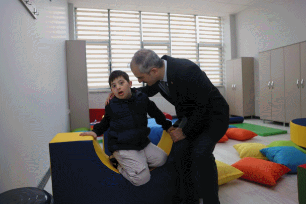 Sadece bir bina olmasın, ailelerimizin taleplerini de karşılasın istedik. Engelli bireylerimizin gündüz ve gece konaklamasına imkan sağlayacak bir bina yaptık. Ailelerimizin ve özel bireylerimizin sosyalleşmesi için bu merkezimizde çalışmalar yaptık. Eğitim atölyeleri ve eğitim odalarıyla, konferans salonundan, veli eğitim odasına, spor salonundan, sesli kütüphanesine kadar her şeyi düşündük. Dış ve iç mekanlarıyla tüm detayları düşünülmüş bir projeyi hayata geçirdik.