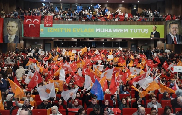 Büyük bir coşkunun yaşandığı beyanname açıklamasında kongre merkezinin 1200 kişilik kongre salonu dışında fuaye alanı doldu. Adeta AK Parti teşkilatlarının gövde gösterisine dönen beyanname açılışında İzmit’i geri almak isteyen AK Parti teşkilatlarının kararlılığı ortaya konuldu. AK Parti İzmit Belediye Başkan adayı Muharrem Tutuş’un beyanname ve meclis üyesi aday tanıtım töreninden önce tüm meclis üyesi adayları kapıda tek tek gelen konukları karşıladı. Salon içinde AK Parti flamaları ile Türk bayrakları sandalyelere bırakıldı.