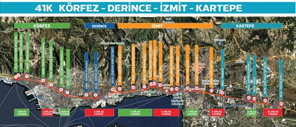 Büyükşehir, Hat 41K için “Gittiğin kadar öde” sistemi ile 18 metre körüklü araçlarla vatandaşlara keyifli ve ekonomik bir yolculuk sunacak. Hat 41K gidiş 26, dönüş 27 durak ve toplam 29 kilometre tek yön uzunluğuna sahip. Kocaeli’nin yeni hattı 4 ilçeye hizmet verecek. Gidiş ve dönüşün 10 bölgeden oluşacağı güzergâhlarda her bölge içine tanımlanmış duraklar bulunacak. Biniş yapılan durağın tanımlı olduğu bölgeyle iniş yapılan durağın tanımlı olduğu bölge arasında ücretlendirme hesaplaması yapılacak. Otobüs içindeki cihaza kart okutulduğunda, binilen bölgeden son bölgeye kadar belirlenen ulaşım ücreti ‘Kocaelikart’ içindeki bakiyeden bloke edilecek. Otobüsten indikten sonra duraklardaki ücret iade cihazına kart okutulduğunda, sadece gidilen bölgenin ücreti alınacak, geriye kalan miktar karta iade edilecek. Ücret iade işlemi için otobüsten indikten sonra duraklardaki ücret iade cihazlarına kartın okutulması gerekecek. Otobüsten indikten sonra duraklardaki ücret iade cihazına kartın okutulmaması durumunda, son bölgede inilmesi varsayılarak karta herhangi bir ücret iade işlemi gerçekleştirilmeyecek. Hat 41K’dan indikten sonra bloke kaldırmadan başka bir toplu taşıma aracına binilmesi durumunda bloke edilen tutarın iadesi mümkün olmayacak. 7/24 kâğıt bilet ve temassız kredi/banka kartlarında ücret iadesi bulunmadığı için bu kartlar Hat 41K’da kullanıma kapalı olacak. Ayrıca başlangıçta aynı kart ile otobüste en fazla bir defa biniş yapılabilecek.