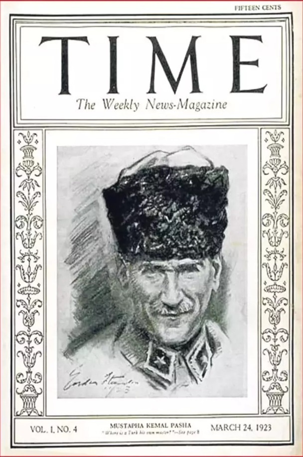 Cumhuriyet’in kurucusu Mustafa Kemal Atatürk, ABD’li Time dergisinin kapağında ilk defa 24 Mart 1923 tarihinde yayınlanan sayıda yer aldı. ABD’li dergi 101 yıl önce yayınlanan sayıda Atatürk’ten övgüyle bahsetti. Yazıda Atatürk’ün Anadolu topraklarında özgür bir ulus kurma mücadelesi ve kişiliği övgü ile anlatıldı.