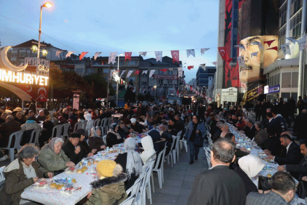 İzmit Belediyesinin, belediye meydanında gerçekleştirdiği büyük halk iftarı on binlerce İzmitlinin katılımıyla gerçekleşti. Ramazan ayının bereketini paylaşan vatandaşları İzmit Belediye Başkanı Fatma Kaplan Hürriyet karşıladı. Vatandaşlara hayırlı Ramazanlar diyerek sözlerine başlayan Başkan Hürriyet, “Değerli komşularım, değerli hemşerilerim mübarek Ramazan ayında sizlerle aynı sofranın etrafından buluşmak ne kadar güzel. Rabbim tuttuğunuz oruçları, ettiğiniz duaları kabul etsin inşallah
