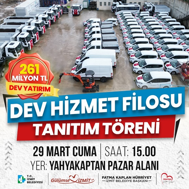 İzmit Belediye Başkanı Fatma Kaplan Hürriyet öncülüğünde oldukça zorlu süreçler sonunda kiralama rantını sona erdirerek belediyeye kazandırılan dev araç filosu yarın İzmit halkının huzuruna çıkacak. 261 milyon liralık devasa yatırımın ürünü olan araçlar 29 Mart Cuma (Yarın) saat 15.00’da Yahya Kaptan Pazar Alanında tanıtılacak. Adeta bir gövde gösterisine sahne olacak programa tüm İzmitliler davetli.