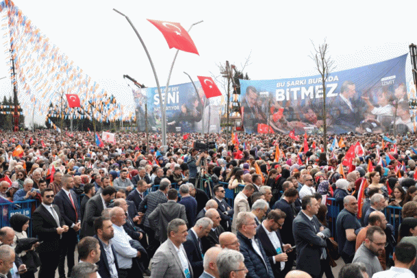 AK Parti Genel Başkanı ve Cumhurbaşkanı Recep Tayyip Erdoğan seçim mitinglerinin sonuncusunu bugün Kocaeli’de gerçekleştirdi. Kocaeli Kongre Merkezi Miting Alanı’ndaki Büyük Kocaeli Mitingi’ne on binlerce vatandaş akın etti. İlimize en son 15 Nisan 2023’te gelen Cumhurbaşkanı Erdoğan, bugünkü mitingde yine Kocaeli’ye yakışır şekilde ağırlandı. 12 ilçeden akın akın gelen vatandaşlar gelin gibi süslenen miting alanını erken saatte doldurdu.