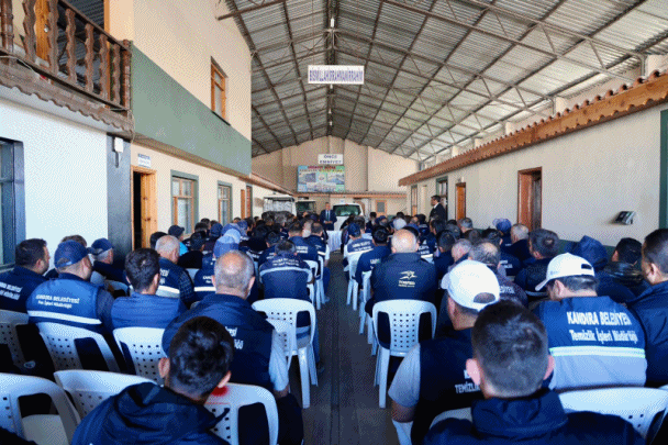 Bayram tatili sonrası ilk mesai gününe Fen İşleri Müdürlüğü ve Temizlik İşleri Müdürlüğü personel toplantısı ile başlayan Ölmez, yeni dönemde ‘’ Daha güvenli iş, Daha Güzel iş ‘’ sloganı ile hareket edeceklerini ifade etti.
