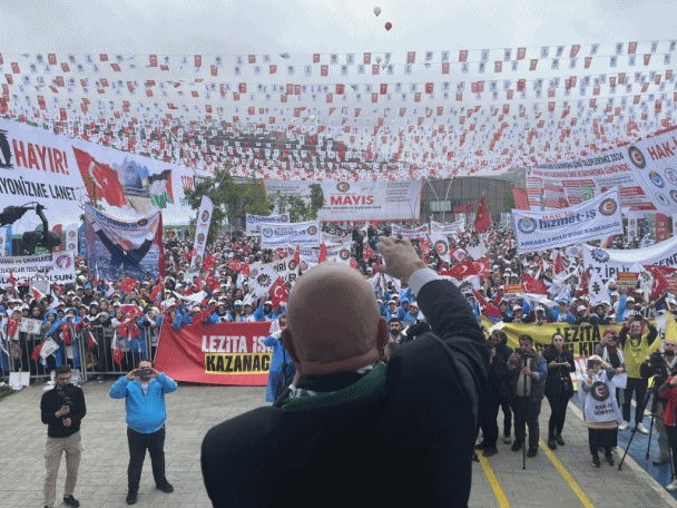 HAK-İŞ’in bu yıl 1 Mayıs İşçi Bayramı için adres olarak belirlediği Kocaeli kongre Merkezi'ndeki kutlamaya ilgi büyüktü. Alanda toplananlar Hak İş nerede biz oradayız" sloganları attılar.