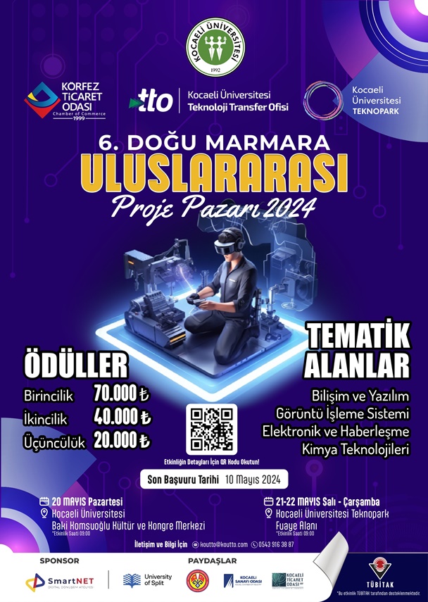 Ayrıca etkinlik TÜBİTAK 1503-Proje Pazarları Destekleme Programı kapsamında desteklenmektedir. SmartNET Dijital Dönüşüm Ajansı’nın sponsor olduğu etkinlik 20 Mayıs tarihinde Baki Komsuoğlu Kültür ve Kongre Merkezi'nde, 21-22 Mayıs'ta ise KOÜ Teknopark'ta gerçekleştirilecektir. Belirlenen temalarda hakem değerlendirmesinden başarıyla geçen proje posterlerinin etkinlik boyunca sergileneceği, özel sektör kuruluşlarından konuşmacıların yer alacağı bir program ziyaretçilerini bekliyor. Tematik alanların;
