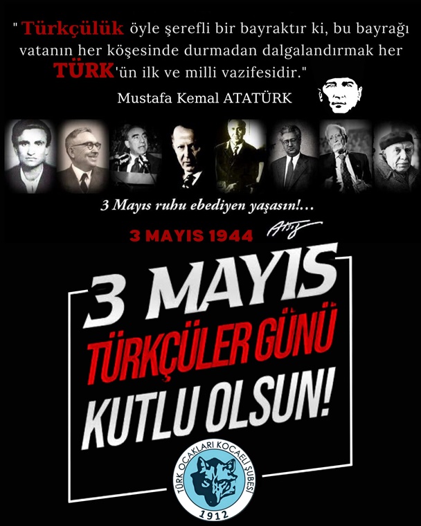 3 Mayıs Türkçüler Günü vesilesiyle, Türk milletinin şanlı tarihine geçmiş, Türk milliyetçiliğinin abidelerine olan minnet ve şükranlarımızı bir kez daha ifade ediyoruz. Ruhları şâd olsun.