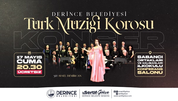 Şef Aysel Demircan yönetimindeki Derince Belediyesi Türk Müziği Korosu, Derincelilere müzik ziyafeti sunacak. Konser için son hazırlıklarını tamamlayan Derince Belediyesi Türk Müziği Korosu’nun ücretsiz olarak düzenleyeceği etkinliğe tüm ilçe sakinlerinin davetli olduğu belirtildi. Türk Halk Müziği ve Türk Sanat Müziği’nin unutulmaz eserlerinin yorumlanacağı konser 17 Mayıs Cuma günü saat 20.30’da Sabancı Ortakları ve Çalışanları İlkokulu Konferans Salonu’nda gerçekleşecek.