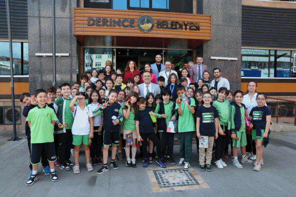 Derince Belediye Başkanı Av. Sertif Gökçe, bu kez Nesibe Aydın Eğitim Kurumları Kocaeli Kampüsü’nden öğrencileri konuk etti. Derince Belediyesi Meclis Salonu’nda gerçekleşen görüşmede Başkan Gökçe, Nesibe Aydın Eğitim Kurumları Kocaeli Kampüsü sınıf öğretmenleri Ayhan Güler, Merve Çetin, Ezgi Özsu, İngilizce öğretmenleri Didem Üliç ve Furkan Türk ile 3. sınıf öğrencilerini konuk etti. Nesibe Aydın Eğitim Kurumları 3. sınıf öğretmenlerinin PYP temelli eğitimleri kapsamında "Şehirlerdeki sistemler toplulukların ihtiyaçlarının karşılanmasında etkilidir" ana fikrinden yola çıkarak belediye çalışmaları ile ilgili bilgi edinmek için yaptıkları röportaj kapsamında konuk oldukları Derince Belediye Başkanı Av. Sertif Gökçe önemli bilgiler verdi.