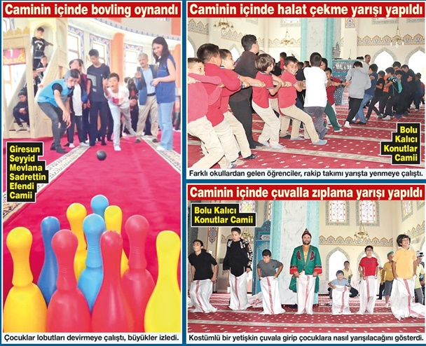 - Giresun’da Seyyid Mevlana Sadrettin Efendi Camii’nde düzenlenen etkinliğe İl Milli Eğitim Müdürü Ertuğrul Tosunoğlu ile Gençlik ve Spor İl Müdürü Muzaffer Ergün de katıldı. Şenliğin başlangıcında Giresun BİLSEM öğretmenleri tarafından kimya ve biyoloji alanları, robotik kodlamayla ilgili çalışmalar sergiledi. Caminin içinde ise palyaço gösterisi yapıldı, çocuklar bowling oynadı ve meddah gösterisi izledi.