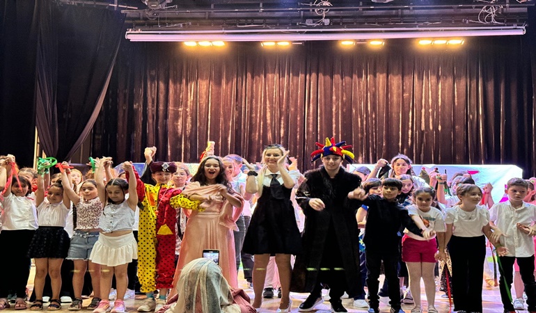 130 öğrencinin eğitim gördüğü Sanat Merkezi’ nin yılsonu etkinliği yapıldı. Kapanış programında müzikal oyun oynayan öğrenciler, izleyenlere duygu dolu anlar yaşattı. ‘Tebessüm Ülkeri’ adlı müzikal tiyatro oyununda Filistin’de yaşananlar ele alındı.