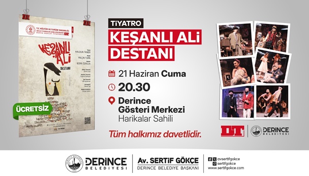 Derince Belediyesi, kültürel ve sanatsal etkinlikler kapsamında çok önemli bir eseri ilçe halkı ile buluşturuyor. Tiyatronun usta kalemi Haldun Taner'in yazdığı, müziklerini Yalçın Tura'nın yaptığı ve Bora Özkula'nın yönettiği, “Keşanlı Ali Destanı” tiyatro tarihinin başyapıtları arasında yer alıyor.