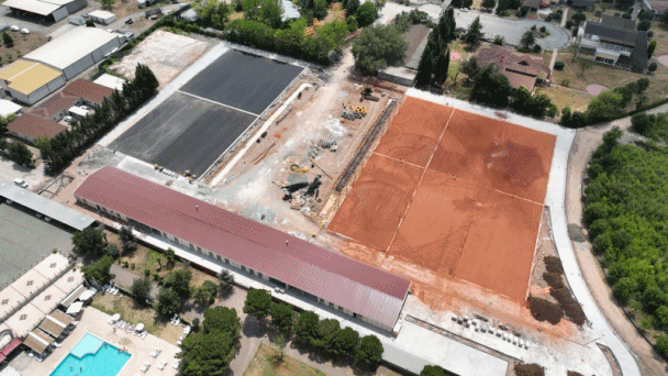 Proje kapsamında toprak kort kiremit tozu sulama çalışmaları, balon kort asfalt silindir çalışmaları ve sert kort kiriş demir donatı çalışmaları devam ediyor. Tenis merkezini çevreleyen ring yolda baskı beton dökümü yapılıyor. Yapının mekanik cihazların montaj imalatları sürüyor. Proje tamamlanma oranı %80’e ulaştı.