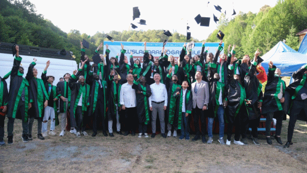 Kocaeli Büyükşehir Belediyesi’nin ödüllü gençlik modeli ‘Kılavuz Gençlik’ çatısı altında faaliyet yürüten Akademi Üniversite-Uluslararası Öğrenciler Birimi, Kocaeli’de okuyan uluslararası öğrenciler için mezuniyet töreni düzenledi. Gençlik ve Spor Hizmetleri Dairesi Başkanlığı’nın uluslararası öğrencilere yönelik yürüttüğü çalışmalar kapsamında Diriliş-1 Kampı’nda düzenlenen mezuniyet töreninde öğrenciler kep attı. Kocaeli’nin kültür elçilerinin renklendirdiği programda konuşan Büyükşehir Belediye Başkanı Tahir Büyükakın, “Her ne yapıyorsanız yapın insanlık için mücadele edin. Gittiğiniz yerlerde, burada öğrendiğiniz güzellikleri anlatmayı unutmayın” dedi.