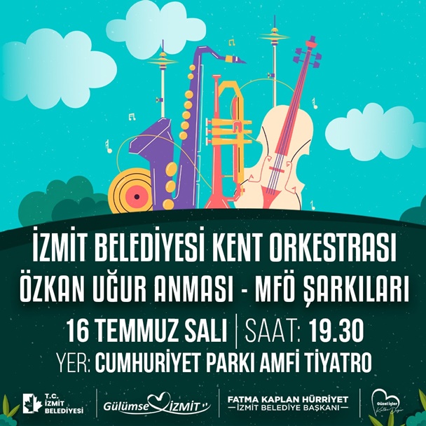 Kent Orkestrası, geçtiğimiz yıl aramızdan ayrılan usta sanatçı Özkan Uğur anısına Cumhuriyet Parkı Amfi Tiyatro’da konser verecek. 16 Temmuz’da saat 19.30’daki konserde Özkan Uğur ve MFÖ’nün unutulmaz şarkıları seslendirilecek. İzmit Belediyesi Kent Orkestrası, Park Konserleriyle vatandaşların sıcak yaz akşamlarına renk katmayı sürdürecek. İzmit Belediyesi konsere tüm İzmitlileri davet etti.