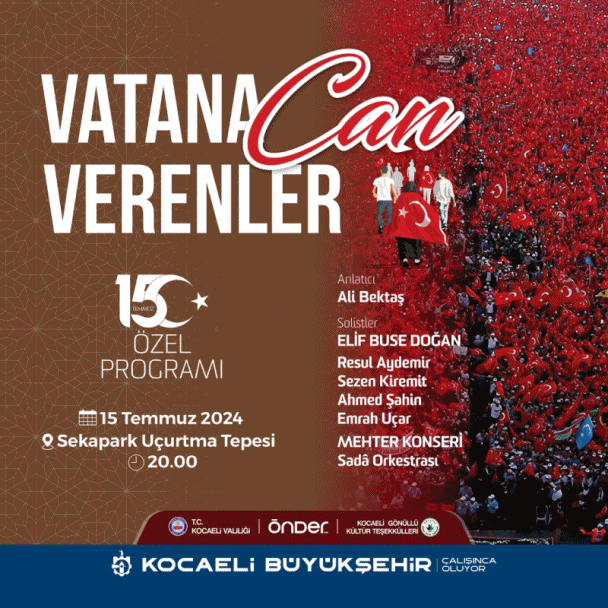 Hep birlikte daha güçlü bir Türkiye için çalışmaya devam edeceğiz. Demokrasiye ve bağımsızlığa olan inancımızla, yarınlarımızı daha aydınlık kılacağız. Kocaeli Büyükşehir Belediyesi olarak 15 Temmuz hain darbe girişiminin 8. yılında yine önemli ve anlamlı bir program düzenliyoruz. Hazırladığımız özel program, 15 Temmuz destanını yeni kuşaklara anlatacak ve ulusal hafızanın tarihsel sürekliliğine hizmet edecek. Bu özel programda “Vatana Can Verenler” rahmet ve minnetle anılacak.
