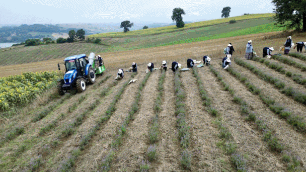 Derince ilçesi Tahtalı Mahallesi’nde İbrahim Turan’ın 13 dekarlık tarlasına ekilen lavanta çiçeklerinin hasadı, Büyükşehir tarafından istihdam edilen kadın personel ve aynı zamanda tasarımı ve üretimi tamamen milli ve yerli imkanlarla Büyükşehir Belediyesince yaptırılan römork yüklemeli aromatik bitki hasat makinasıyla yapılıyor. Görsel şölen sunan mor tarlalardaki lavanta hasadı, kullanılan makina sayesinde daha verimli bir şekilde yapılıyor.