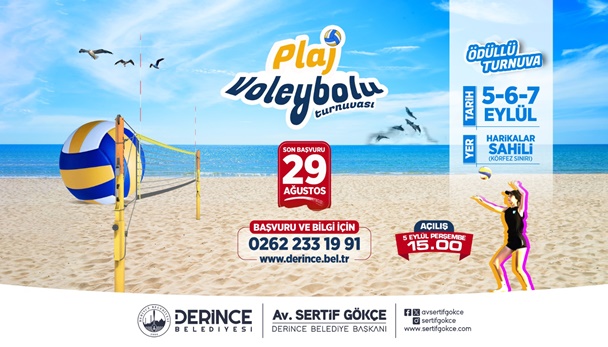 Yaz dönemi ile birlikte kültürel, sanatsal ve sportif etkinliklerin hız kesmeden devam ettiği Derince’de yeni bir heyecan daha start alıyor. Derince Belediyesi tarafından düzenlenecek Plaj Voleybolu Turnuvası için kayıtlar başlarken, son başvuru tarihi 29 Ağustos Perşembe günü olarak belirlendi. Derince’de düzenlenecek olan bu önemli organizasyona katılmak isteyenler 0 262 233 19 91 numaralı telefondan bilgi alabilecekleri gibi www.derince.bel.tr adresine girerek şartname ve muvafakatname ile katılım formuna ulaşabilecek.