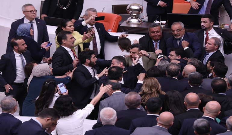 Türkiye Büyük Millet Meclisi (TBMM) bugün Can Atalay için olağanüstü toplandı. TİP milletvekili Ahmet Şık'ın kürsüde söylediği 'Sizin utanmanız yok' sözlerinin ardından AKP'li Özalan yumruklu saldırı gerçekleştirdi. Meclis'te tansiyon yükseldi. Toplantıya ara verildi. Aranın ardından toplantıda tekme ve yumruklar havada uçuştu. TİP milletvekili Sera Kadıgil, DEM Partili Gülistan Kılıç Koçyiğit'in yaralandığını duyurdu. Meclis'te kan izleri görüntülendi. Yaralanan Koçyiğit ilk açıklamasında, "Durumum iyi. Yüzüm, gözüm, saçım kan olmuştu. Şu an onu temizliyorum. Az sonra kürsüde söz alıp konuşacağım" dedi.