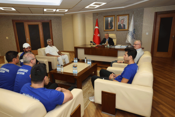 15-24 Ağustos tarihleri arasında Moldova’da yapılan Büyükler Dünya Bilek Güreşi Şampiyonası’nda 5 farklı sıklette 1 altın ve 4 bronz madalya kazanan sporcuları makamında ağırlayan Başkan Büyükakın, “Dünya Bilek Güreşi Şampiyonası gibi önemli bir organizasyonda elde ettiğiniz başarıdan dolayı mutluyum. Bayrağımızı zirvede dalgalandırdığınız için her birinizi tebrik ederim. Elde ettiğiniz başarılar ile bizleri gururlandırıyorsunuz” diye konuştu.