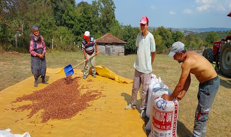 Ayıklanan fındıklar toprak harmanlarda bez üzerine serilip kurutulduktan sonra toz, toprak ve içi boş olanlarından ayrıldı, taş, toprak gibi sert yabancı cisimler ayıklandı. Kırık, koruk ve delikli fındıklar seçildi.
