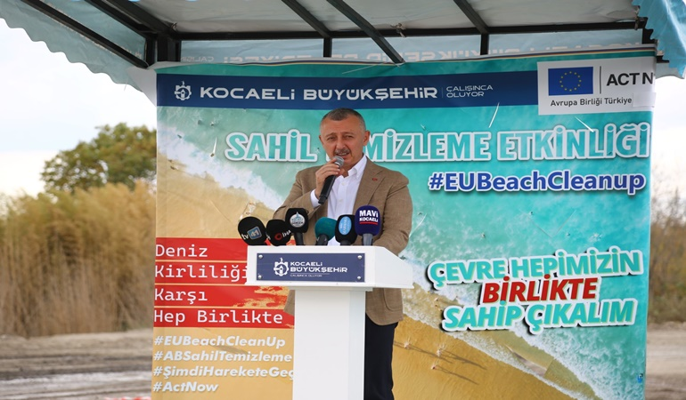 Kocaeli Büyükşehir Belediyesi Dünya Temizlik Günü kapsamında gerçekleştirilen "EU Beach Clean Up" etkinliğinde sahil temizliği yaptı. Dip Çamuru tesisinde gerçekleştirilen programda konuşan Başkan Büyükakın; “İzmit Körfezimizi temizliyoruz. Ekosistemi onarıyoruz. Tüm Belediyelerin bizim gibi arıtma tesisi kurması gerekiyor” dedi.