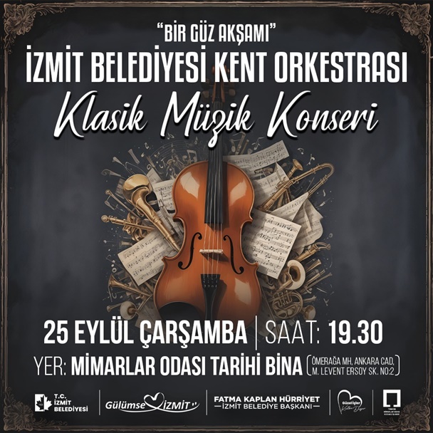 Yaz boyunca birbirinden renkli konserlerle vatandaşlara unutulmaz anılar bırakan İzmit Belediyesi Kent Orkestrası müziğin büyülü dünyasında İzmitlileri bir araya getirmeye devam ediyor. İzmit Belediyesi Kent Orkestrası hazırladıkları repertuar ile keyifli bir Eylül akşamına imza atacak.