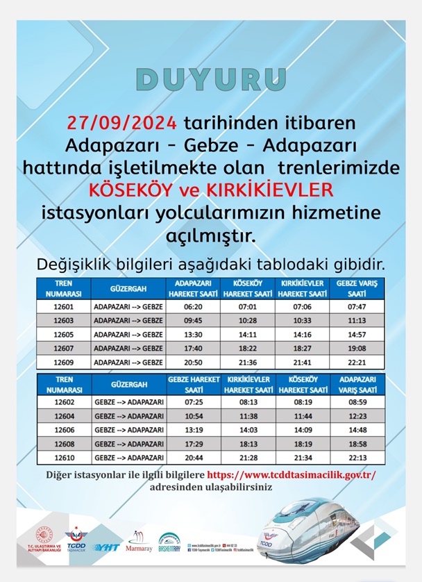 Tren sefer sayısının artırılması 2012 yılından önce olduğu gibi günde 24 sefer olmasını isteniyor. "Tren bilet ücretleri daha önce otobüs ücretlerinin yarısı " olduğunu belirten vatandaşlar bilet fiyatlarına artık zam yapılmamasını da talep ediyorlar.