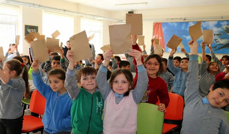 Kocaeli Büyükşehir Belediyesi’nin köy okulları projesi hız kesmeden devam ediyor. Her yıl farklı aktivitelerle çocukların kalbine dokunan Büyükşehir, bu zamana kadar toplam 4 bin 900 öğrenciye ulaşarak, onları kâğıdın ilgi çekici serüveniyle tanıştırdı. Kültür ve Sosyal İşler Daire Başkanlığı’na bağlı olarak hizmet veren SEKA Kâğıt Müzesi’nin köy okulları projesi, 2024-2025 eğitim-öğretim döneminde de öğrencileri kâğıdın büyülü dünyasıyla buluşturuyor. Bu kapsamda Kandıra’da bulunan Kocakaymaz Yunus Emre İlkokulu’na giden Büyükşehir ekipleri, öğrencilere geri dönüşümden kâğıt yapımını uygulamalı olarak gösterdi. Böylece öğrencilerin kendi kâğıtlarını yaparak geri dönüşüm konusunda bilinçlendirilmeleri sağlandı.