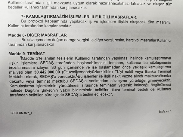SEDAŞ 1.5 YIL SONRA ADIM ATTI VE 30 MİLYON TEMİNAT İSTEDİ