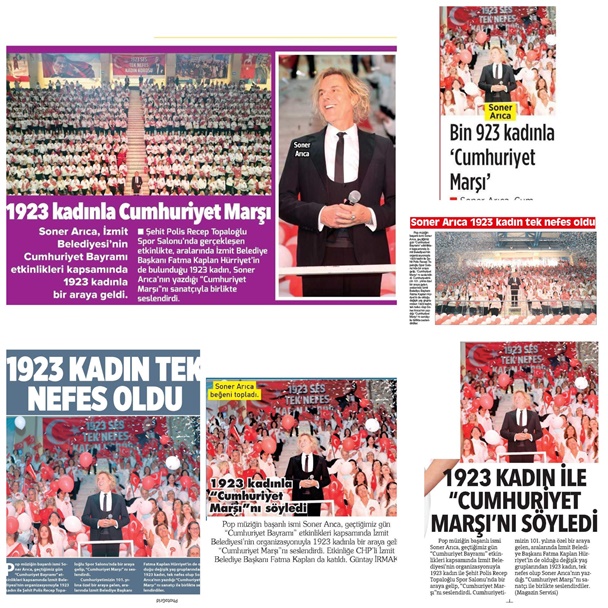 Konser yerel ve ulusal birçok medya kuruluşu tarafından haber yapıldı. Hürriyet Gazetesinin meşhur magazin eki Kelebek de konser etkinliğine geniş yer verdi. Etkinlik ‘1923 Kadınla Cumhuriyet Marşı’ başlığıyla ilk sayfada kullanılırken ünlü sanatçı Soner Arıca’da haberin yer aldığı sayfayı sosyal medya hesabından paylaştı.