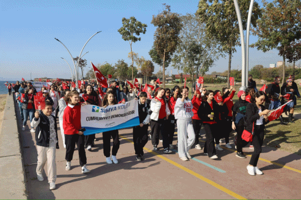 Körfez’de her hafta ‘sağlıklı yaşam’ için gerçekleştirilen sabah yürüyüşü bu hafta ‘Cumhuriyet’ temasıyla gerçekleştirildi. Körfez Belediyesi ve Simya Koleji’nin birlikte düzenlediği yürüyüşte dev Türk ve Atatürk Bayrağı açılırken, yürüyüş öncesinde saygı duruşunda bulunuldu, İstiklal Marşı okundu. Yürüyüşe; Körfez Belediye Başkanı Şener Söğüt, Başkan Yardımcısı Osman Yurt, okul yöneticileri ve Körfezliler katıldı.