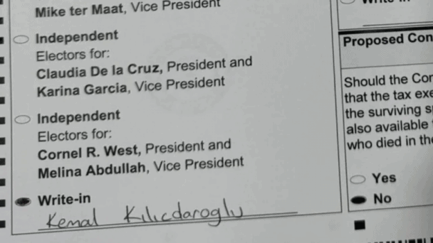 ABD'nin Virginia eyaletinden bir seçmenin, CHP Eski Genel Başkanı Kemal Kılıçdaroğlu'na oy verdiği görüldü.