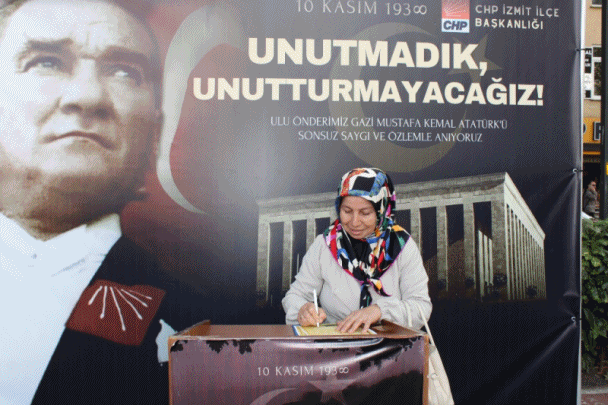 Cumhuriyet Halk Partisi(CHP) İzmit İlçe Örgütü, Gazi Mustafa Kemal Atatürk’ün aramızdan ayrılışının 86’ncı yılında alışılmışın dışında düzenlediği etkinlikle İzmit halkının Atatürk sevgisini ölümsüzleştirdi. Saat 11.00’de CHP İzmit İlçe Binası Yürüyüş Yolu üzerinde kurulan dev ekranda Atatürk’ün yaşamından kesitler ve fotoğraflardan oluşan video gösterimi yapılırken ayrıca Atatürk’ün sevdiği şarkılar dinletildi. Ayrıca Gazi Mustafa Kemal Atatürk’ün en sevdiği halk dansı olan “Zeybek” figürleri halka sergilendi. Düzenlenen etkinlikte CHP İzmit İlçe Başkanı Gökhan Ercan programın son anına kadar çocuklar ve İzmit halkı ile bir arada olurken, İzmit Belediye Başkanı Fatma Kaplan Hürriyet, İzmit Belediyesi Meclis Üyeleri, CHP İzmit İlçe Yönetimi, partililer ve çok sayıda yurttaş uzun süre alanda vakit geçirdi.